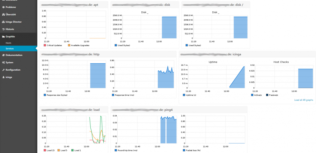 Hier installieren wir Graphite, das Graphite-Web Modul und zusätzlich das Icinga Modul for Graphite. Graphite erstellt aus den Performancedaten der Icinga2 Checks graphen zur Visualisierung der Check-Historie. Mit Hilfe des Graphite-Web Moduls können hier jegliche Graphen erzeugt werden die alle gewünschten Daten enthalten. Das Icinga Modul for Graphite bindet die Graphen an den entsprechenden und passenden Stellen zur Anzeige in das Icinga Web 2 Interface ein.