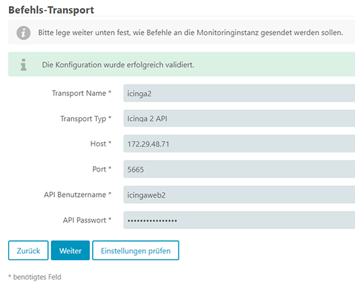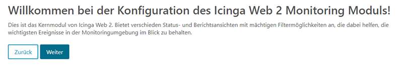 Auf der Console des Systems haben wir nun alle Schritte durchgeführt. Die Konfiguration des Icinga Web 2 Moduls können wir nun im Browser weiterführen. Dazu rufen wir dort die Seite http://SERVERNAME/icingaweb2/setup auf.
