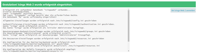 Nach der erfolgreichen Konfiguration werden wir beglückwünscht und bekommen einen Button mit dem wir zur Anmeldeseite weitergeleitet werden.